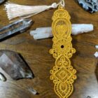 Feather Embroidered Freestanding Lace Bookmark in Yellow