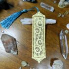 Feather Embroidered Freestanding Lace Bookmark in Yellow