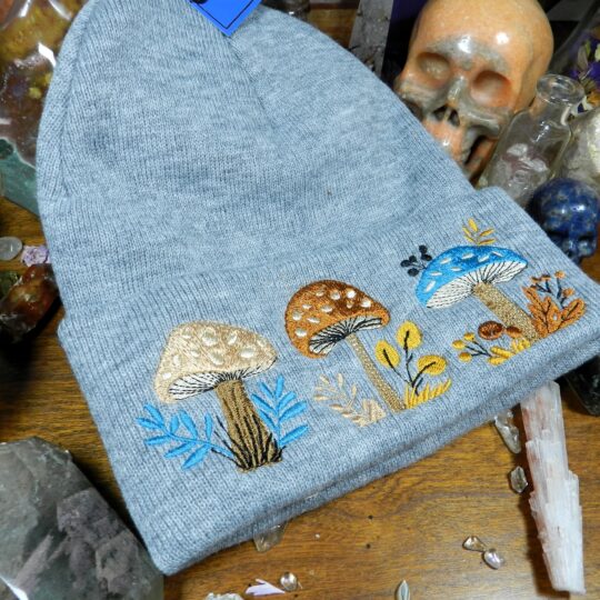 Mushrooms and Autumn Wildflowers Embroidered Beanie