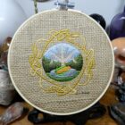 Materials Used: beanie cap, polyester embroidery thread, cut away stabilizer, wash away stabilizer, basting spray